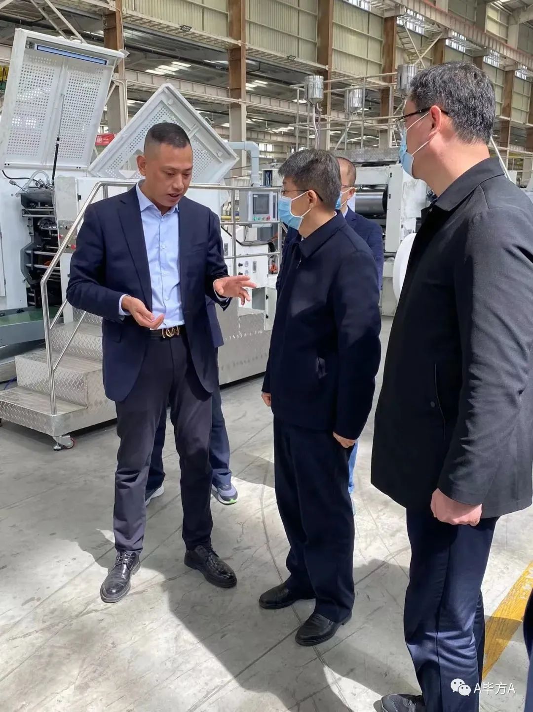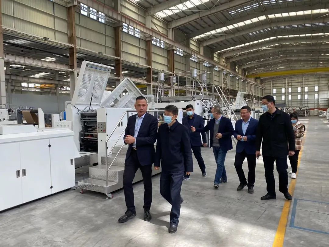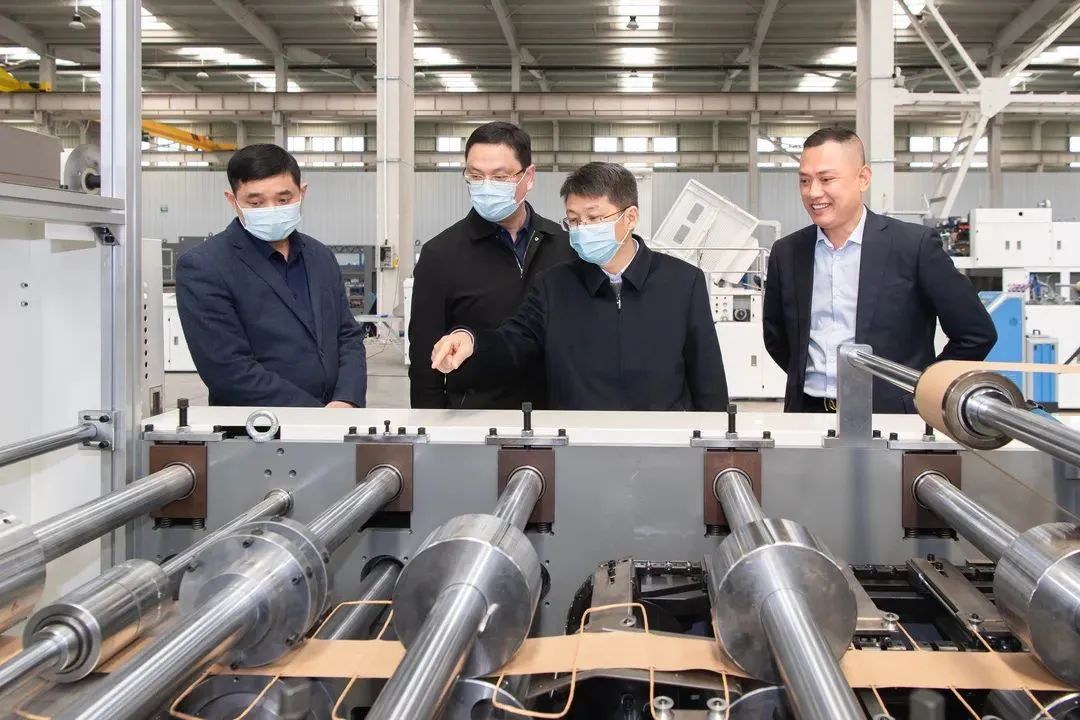 随后程荣武董事长陪同刘伟书记一行参观、考察了公司现代化的装配车间和调试车间。了解公司纸袋机零部件规范化的组装工艺和科学严谨的调机过程。