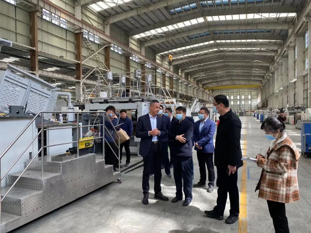 首先程荣武董事长陪同刘伟书记一行参观、考察了公司CNC精加工车间,介绍了公司纸袋机核心零部件严格的生产工艺及高精度的加工标准。